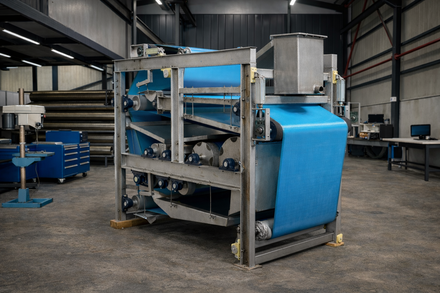 Belt Press sistemleri, çamurun su içeriğini %15-30 civarına kadar düşürebilir, bu da çamurun hacmini önemli ölçüde azaltır ve taşıma ve bertaraf işlemlerinin maliyetlerini düşürür. Bu ekipmanlar, özellikle büyük ölçekli atıksu arıtma tesislerinde tercih edilir çünkü düşük enerji tüketimi ve yüksek verimlilik sunar. Ayrıca, bakım gereksinimleri düşüktür ve uzun ömürlüdür.